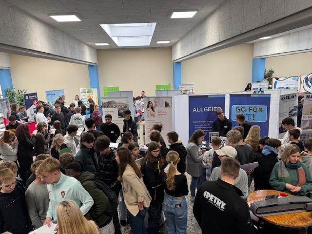 Insgesamt präsentierten sich 25 Unternehmen aus der Region, die ihre vielfältigen Ausbildungs- und Karrieremöglichkeiten vorstellten. Dabei deckten die Aussteller ein breites Spektrum ab – von Metallbau über Versicherung, Bankwesen, Gemeindeverwaltung, Bundespolizei, Straßenbau und Pflege bis hin zur Bürokommunikation.